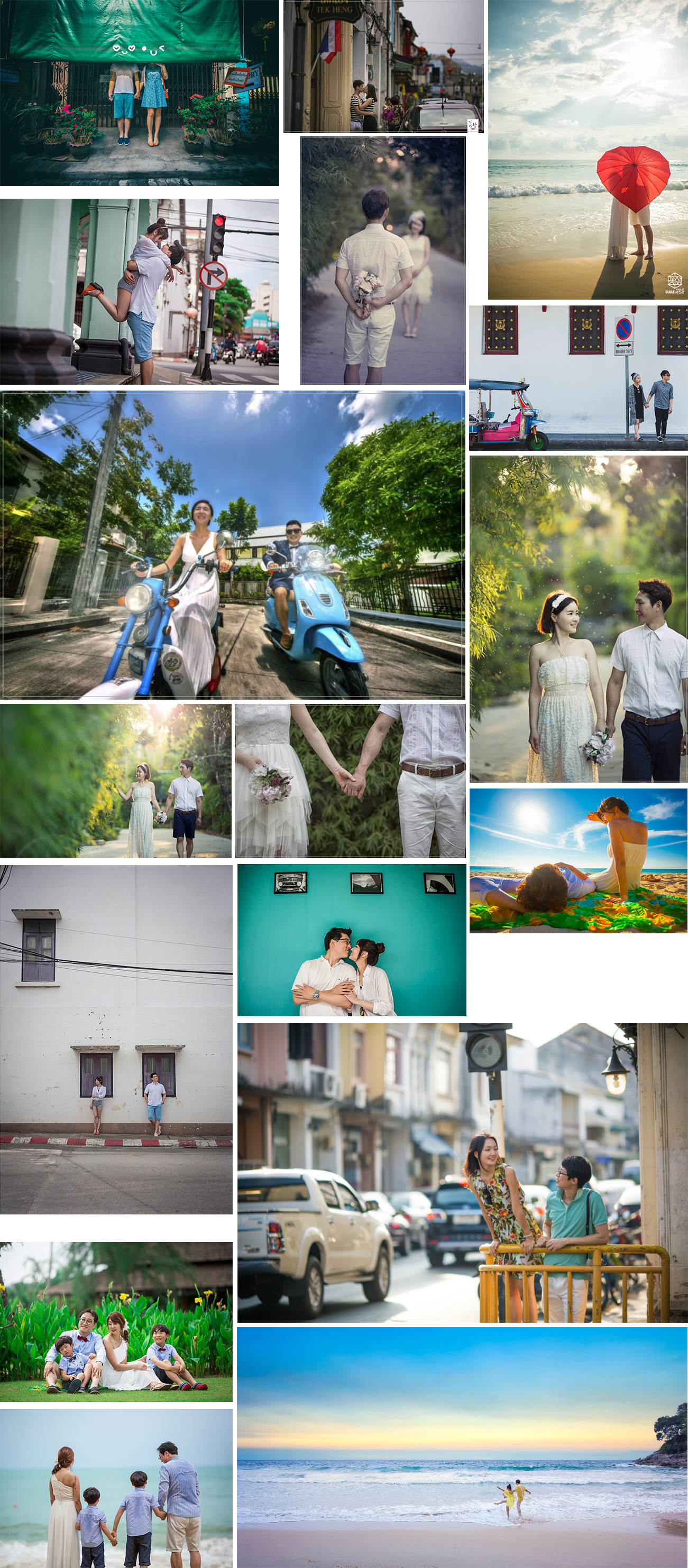 | 비치푸켓 A (45만원) 한국인 포토그래퍼 + 태국인 포토그래퍼 타운/비치/풀빌라 중 택 1, 이동시간 제외하고 1~2시간 소요 (수백 장 촬영) 비치푸켓 B (67만원) 한국인 포토그래퍼+태국인 포토그래퍼 타운/비치/풀빌라 등 택 2, 이동시간 제외 3~4시간 소요 (평균 1000장 내외, 그중 10% 셀렉, 보정) 심플푸켓 A (30만원) 태국인 포토그래퍼 (BEST or MAX가 진행) 타운/비치 중 택 1, 이동시간 제외하고 1~2시간 소요 (수백 장 촬영) 한국인 스텝이 동행합니다. (스케줄상 한국인 스텝이 동행하지 못하는 경우 예약 전 안내드립니다) BEST와 MAX는 영어로 의사소통 가능하나 눈부신 바디랭귀지 실력으로 어려움 없이 진행 가능한 편입니다. 두 분 다 방콕과 푸켓에서 광고 촬영을 하는 프로페셔날 포토그래퍼이며 이미 꽃잠 촬영으로 수많은 한국인 신혼부부들을 촬영해온 포토그래퍼입니다. 촬영 후 보정은 이병석 꽃잠 대표가 직접 진행합니다. 카오락 지역 불가 심플푸켓 B (50만원) 태국인 포토그래퍼 (BEST or MAX가 진행) 타운/비치 등 택 2 포인트 이상 동시에 촬영, 한국인 스텝이 동행합니다. (스케줄상 한국인 스텝이 동행하지 못하는 경우 예약 전 안내드립니다) 두 분 다 방콕과 푸켓에서 광고 촬영을 하는 프로페셔날 포토그래퍼이며 이미 꽃잠 촬영으로 수많은 한국인 신혼부부들을 촬영해온 포토그래퍼입니다. 촬영 후 보정은 이병석 꽃잠 대표가 직접 진행합니다. 카오락 지역 불가 원데이 자유 촬영 (비용 협의) 자유여행을 하시는 하루 동안 이병석 꽃잠 대표가 동행하며 그날 내내 원하시는 만큼 촬영 자유일정에만 해당되며 촬영 특성상 밤보다는 낮 시간이 좋습니다. 비용은 일정에 따라 개별로 문의주시기 바랍니다. ※4명 이상 시 부터 추가요금 발생 (푸켓촬영 A만 가능) ※푸켓 이외 (카오락, 팡아, 나타이 등) 지역 추가 비용 발생 (푸켓촬영 A/B만 가능, 심플푸켓 불가) ※풀빌라, 리조트 내부 촬영 시 호텔 및 리조트에 사전 허가를 받아야 하며 호텔 정책상 내부 촬영이 제한되는 곳들이 있습니다. ※하루 중 가장 더울 때인 점심~1시 전후에는 불가합니다. (더위와 해의 위치 등) |